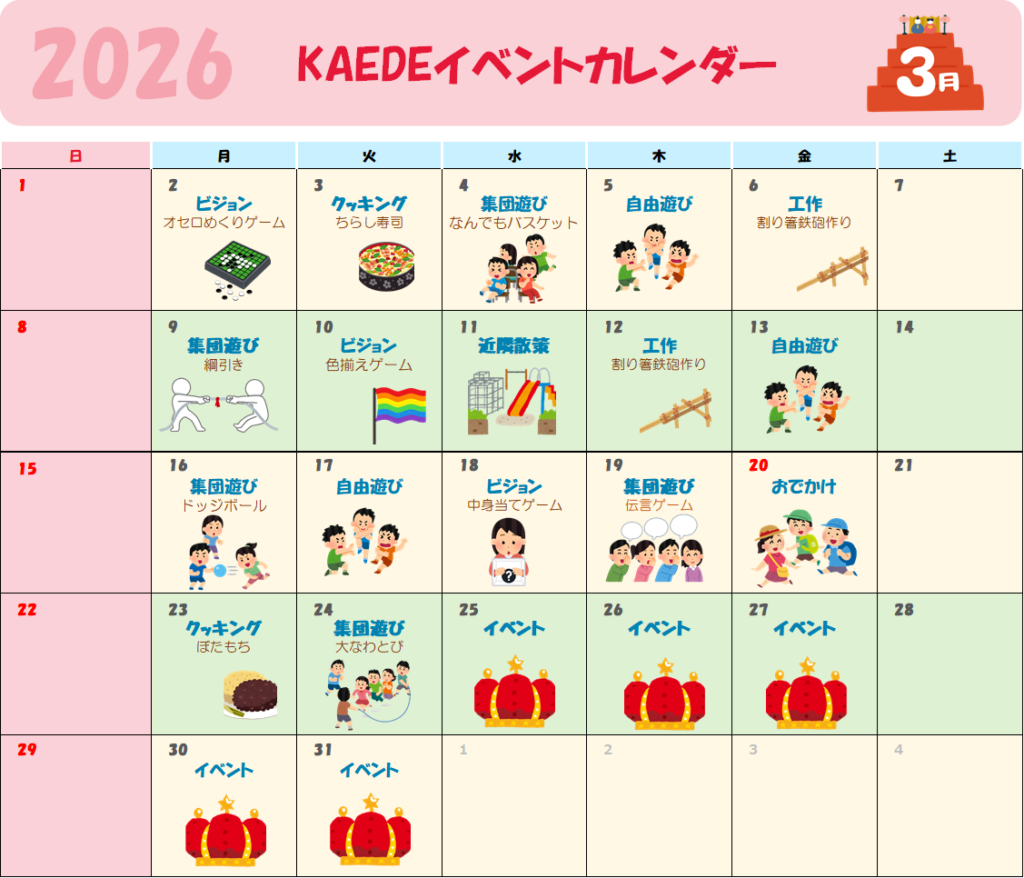 2025年5月に生駒郡三郷町城山台に児童発達支援、放課後等デイサービスを開設しました「KAEDE」です。地域の皆様に信頼され、保護者の方々とともに歩んでいけるよう、スタッフ一同尽くしてまいります。どうぞよろしくお願いいたします。
